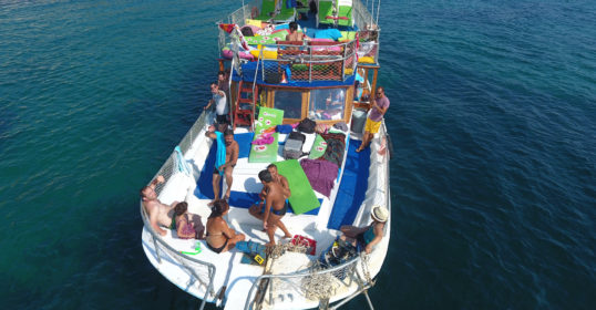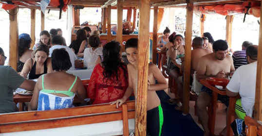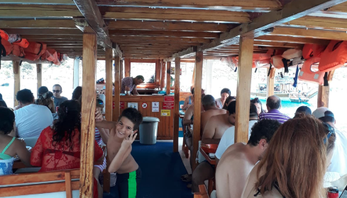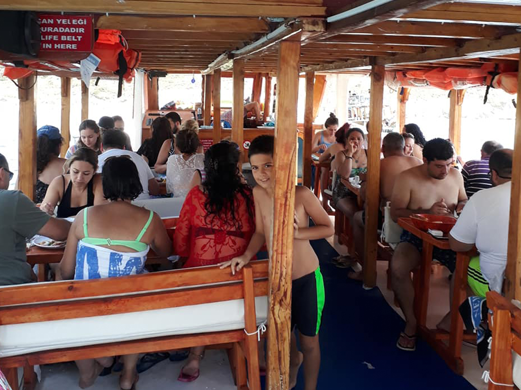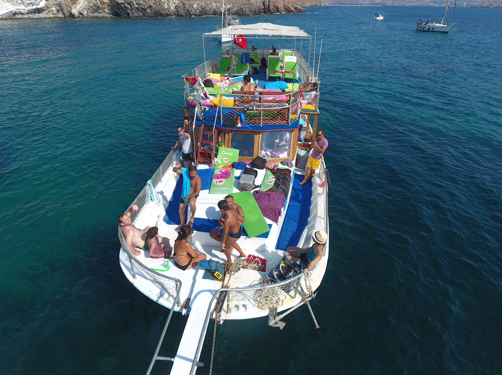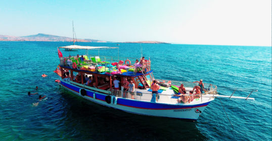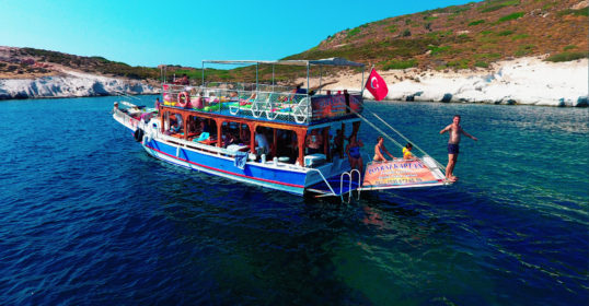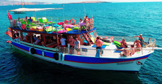 34 kişi kapasiteli Poyraz Kaptan teknesi saat 11:00’da Foça limandan yola çıkıp, güneşlenmek, denize girip eğlenceli saatler geçirmek için her biri eşsiz 4 ayrı koyda mola veriyor.