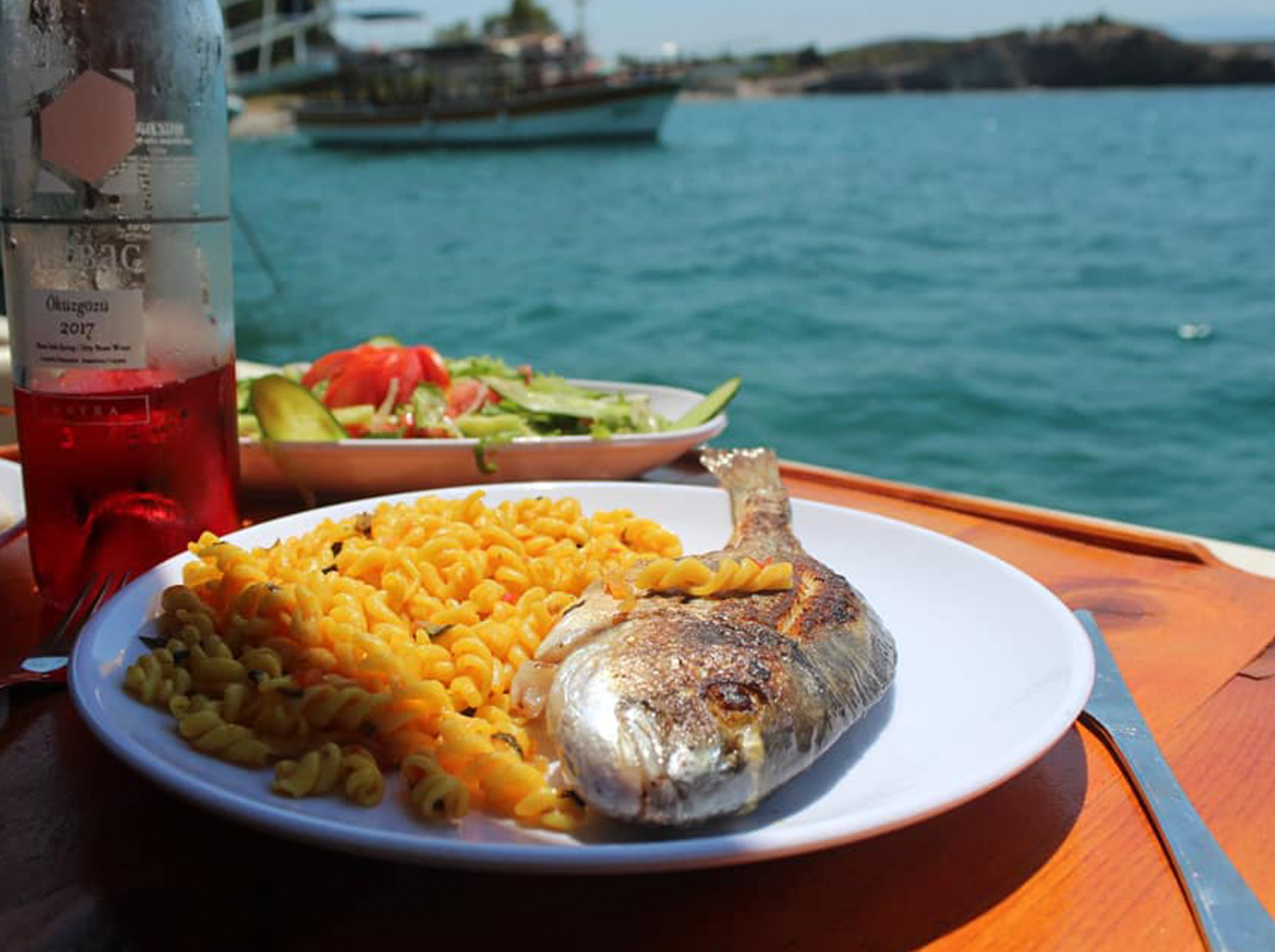 İlk durağımız Akdeniz foklarının yaşam alanı olan Siren kayalıklarını gezip Kosava plajına varıyoruz. Öğlen yemeğimizi burada alıyoruz. Menüde günlük taze ızgara çipura ve soslu makarnamız eşliğinde mevsim salatamız bulunmakta.